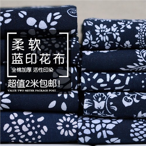 纯棉青花布布料 加厚蓝印花布 中国风民族面料 农家乐桌布窗帘